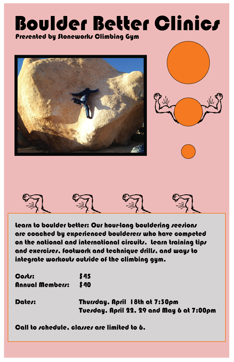 Come and join us to get better at bouldering! Classes start next Thursday.